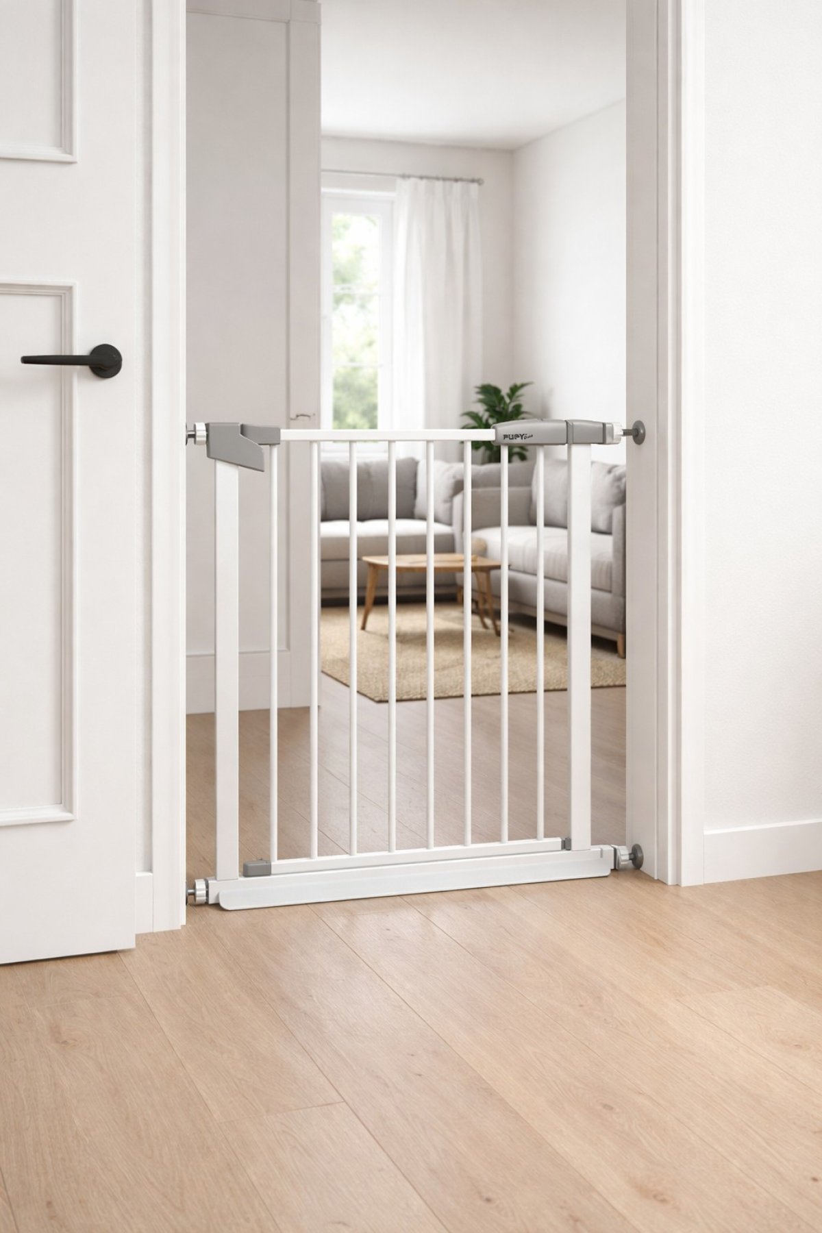 Robustní, spolehlivá zábrana s celou řadou bezpečnostních prvků. Velmi jednoduchá montáž pomocí rozporových šroubů, tudíž bez jakéhokoliv zásahu do zdi nebo obložení dveří. Bezpečnostní zámek, při otevření dvířek 90 stupňů