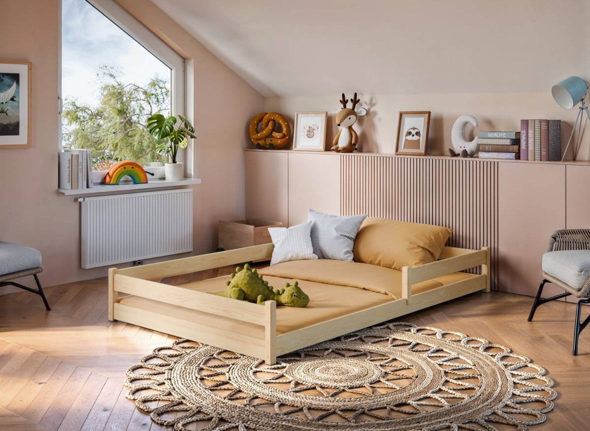 Postel je nízko u země – výška bočnice od podlahy je pouhých 6 cm a rošt je uložen ve výšce 2,5 cm nad zemí. To dětem umožňuje snadné a bezpečné vylézání i zalézání do postele bez potřeby pomoci dospělých.